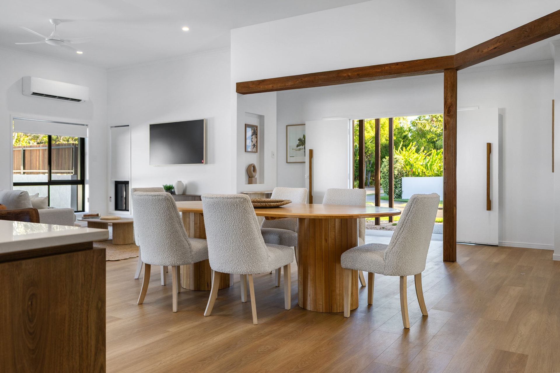 At the heart of the home lies the true showstopper, the large poolside oasis. Whether its kids swimming the day away, or adults relaxing on sun loungers, this private outdoor retreat captures the laid-back charm Noosa is famous for.