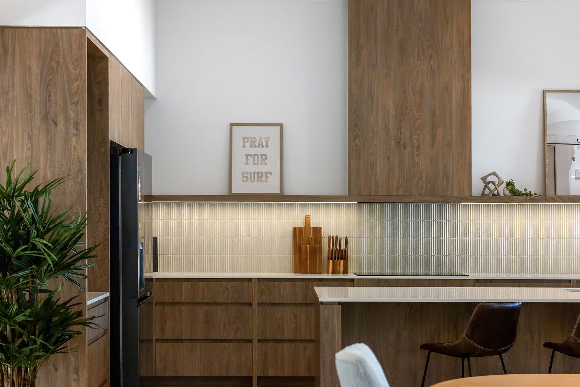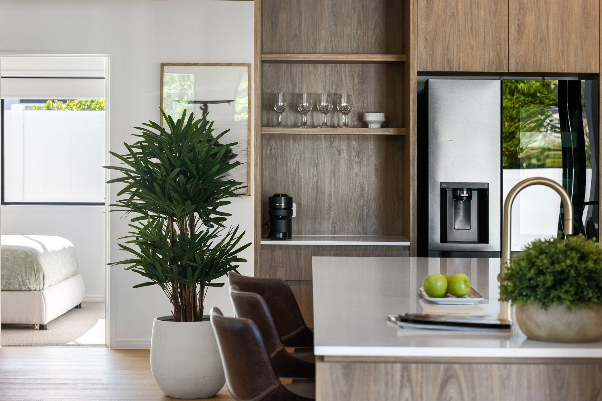 The fully equipped kitchen flows effortlessly into the dining and living zone. Create your favourite meals with Noosa’s fresh local produce and seafood, then open the sliding doors to your deck and let the summer breeze drift through.