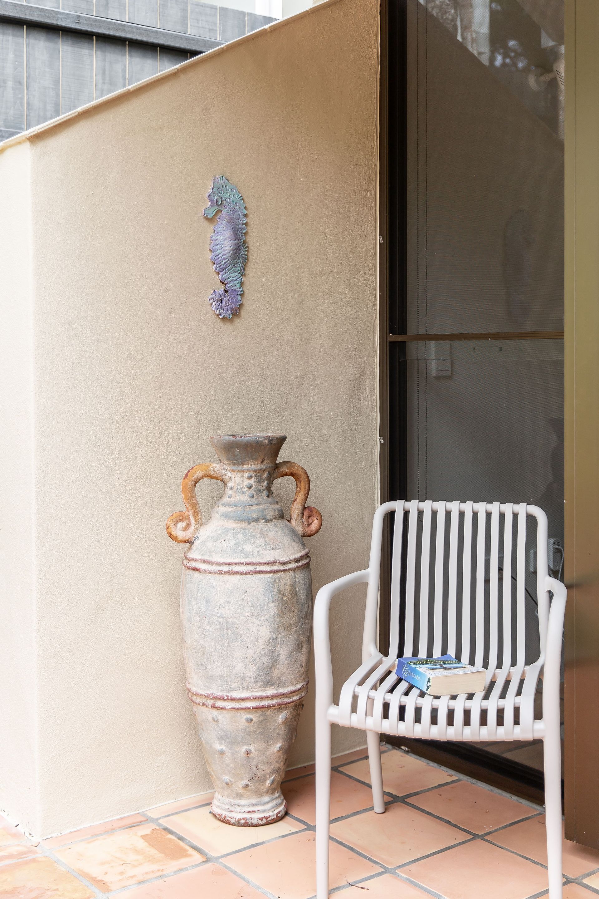 The light-filled kitchen/dining/living space is equipped with modern appliances. The bedrooms upstairs open to private balconies to allow the sea breeze to flow through. The townhouse has a generous sized back courtyard with a BBQ and an outdoor dining table.