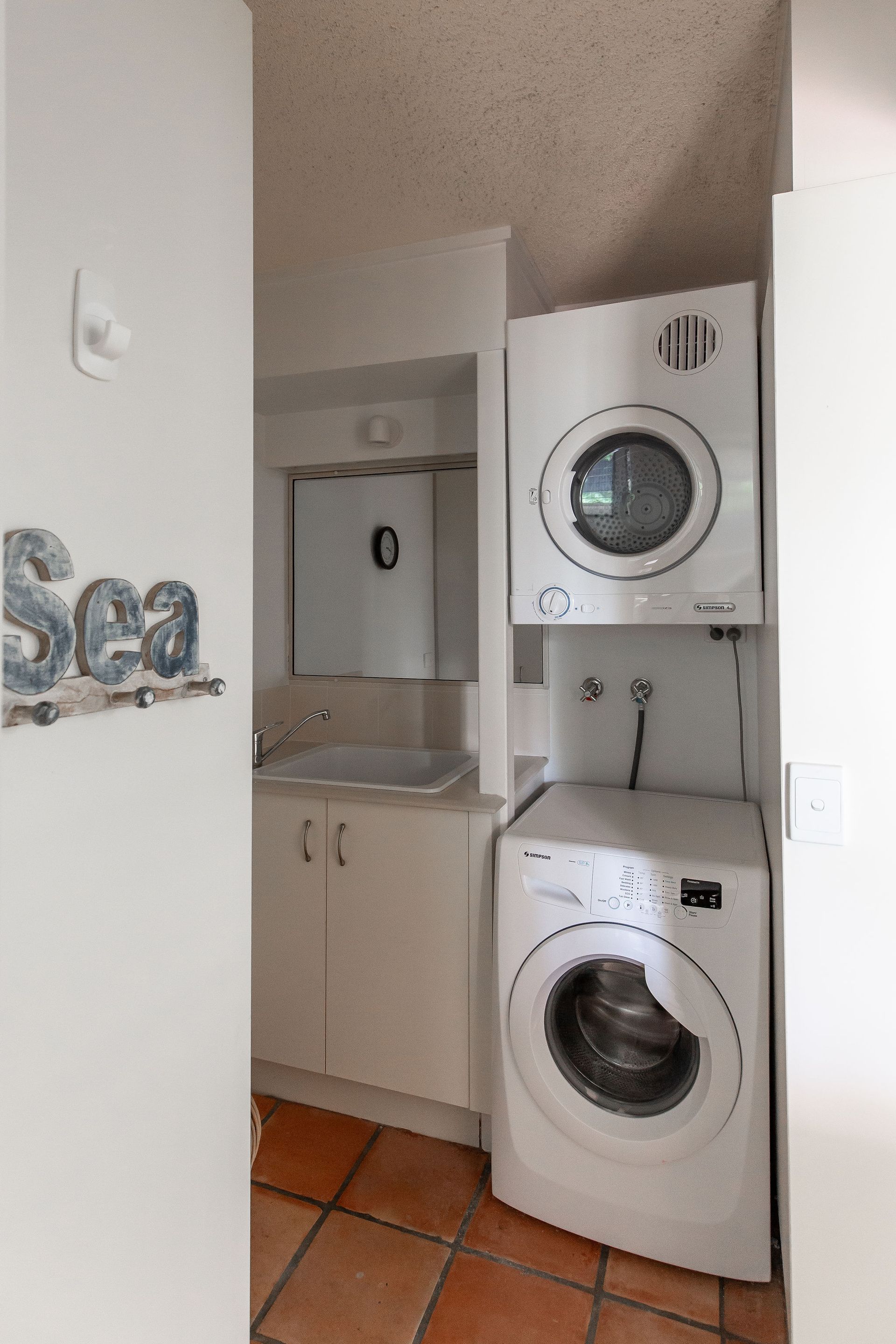 Both bathrooms are spacious. One is downstairs, the other upstairs. There is a self-contained laundry with washer and dryer.