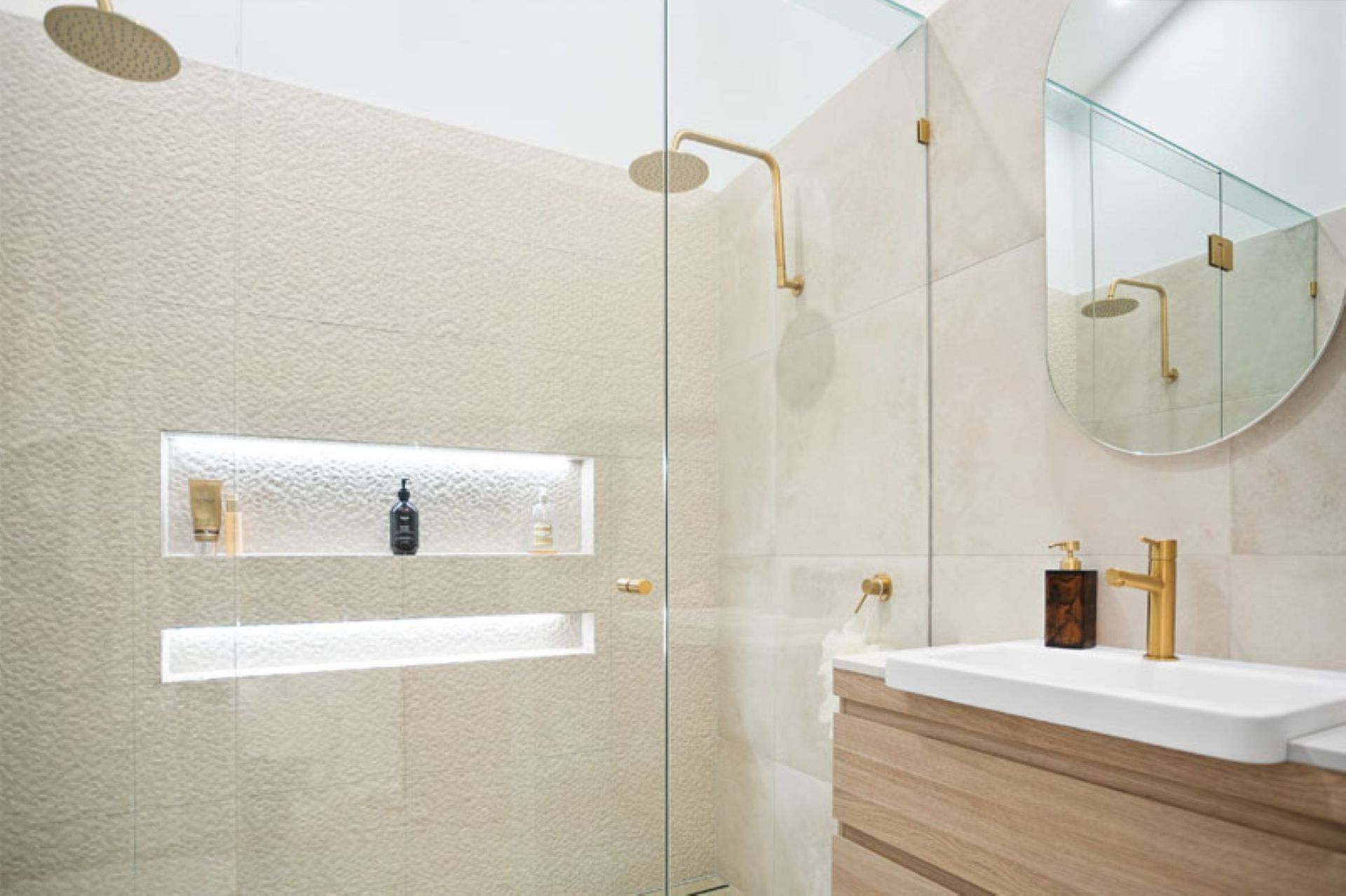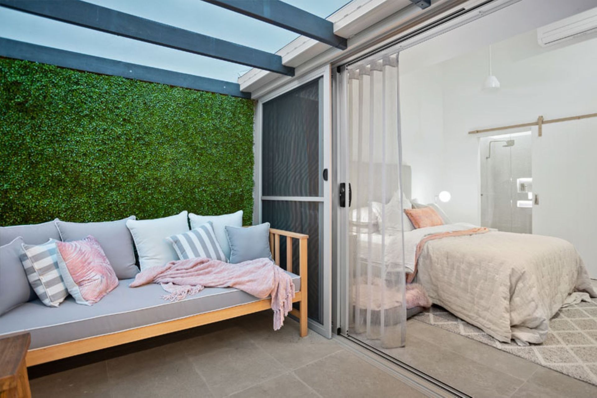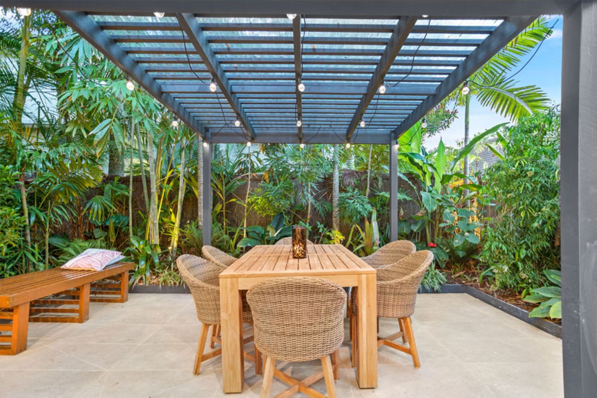 Large glass bi-fold doors open wide to encompass both the front and rear courtyard areas. At the front courtyard enjoy time lounging around your own private plunge pool. The ground floor extends seamlessly to the north-facing rear terrace and private garden which is perfect for alfresco entertaining. Enjoy an outdoor hot/cold shower after your day at the beach.