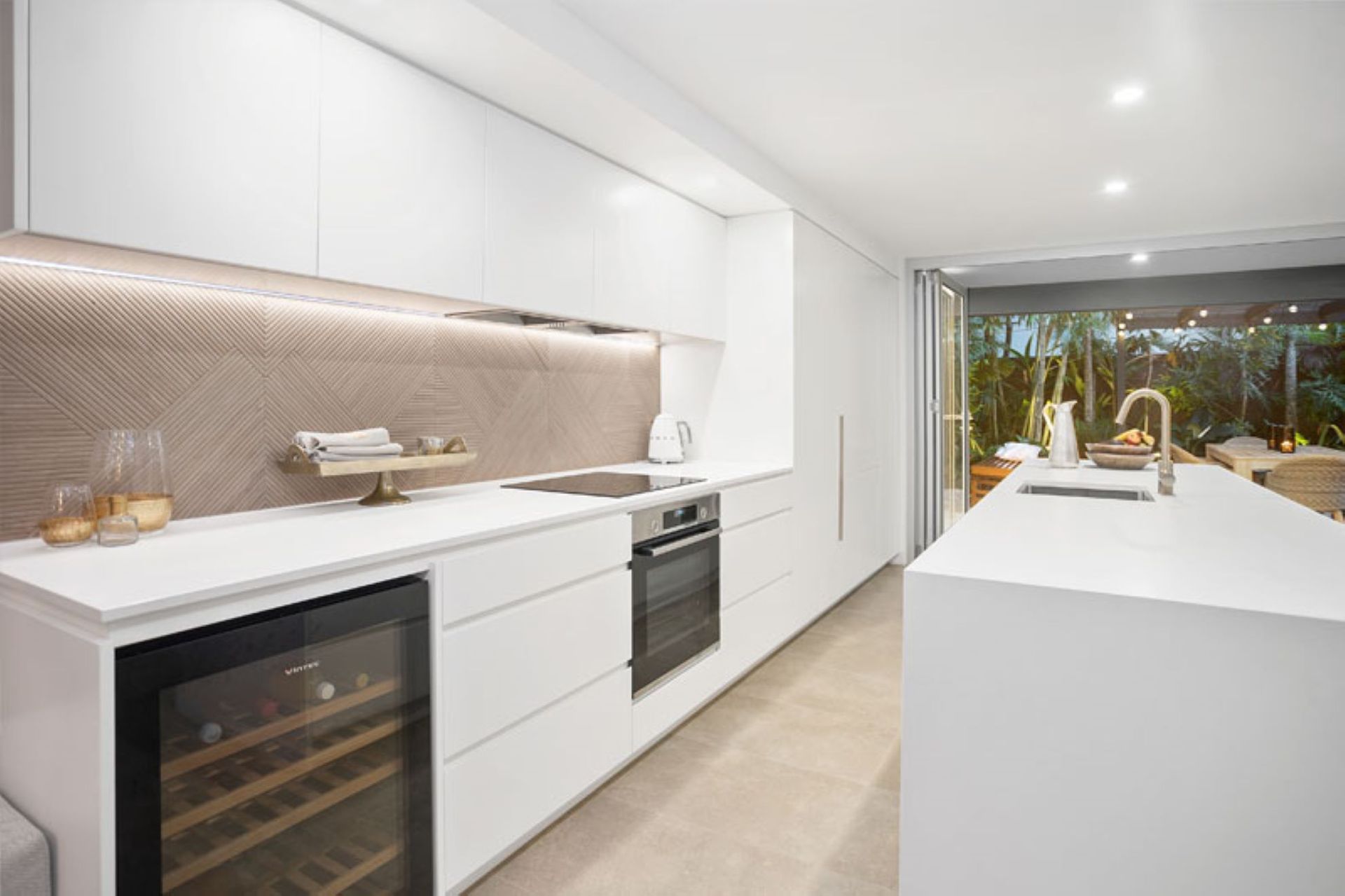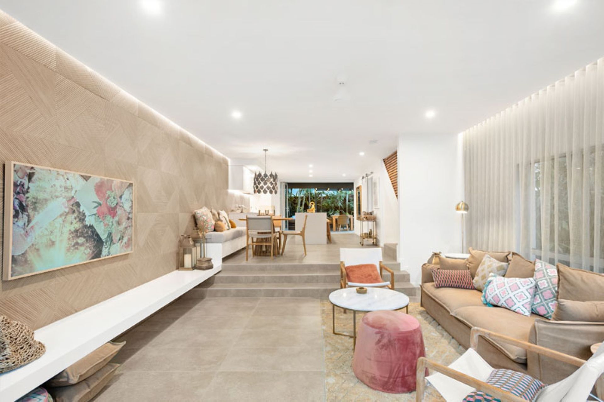 Inside, discover the open plan living area, and dining area, with modern galley style chef's kitchen with stone top island bench and top of the range appliances. This modern designer townhouse embraces the indoor-outdoor lifestyle synonymous with the surrounding tropical region. With neutral calming tones of the décor throughout combined with the quality of the furnishings, reflect the owners’ impeccable sense of style.