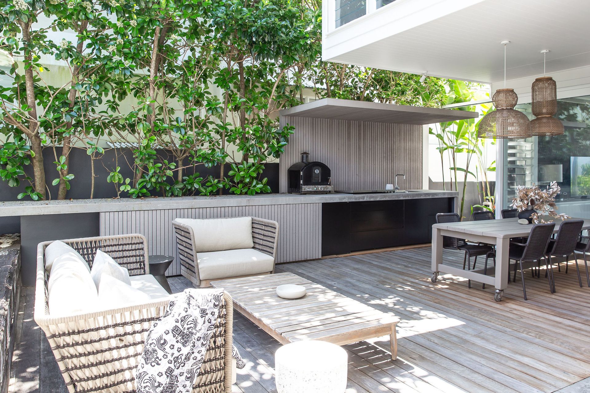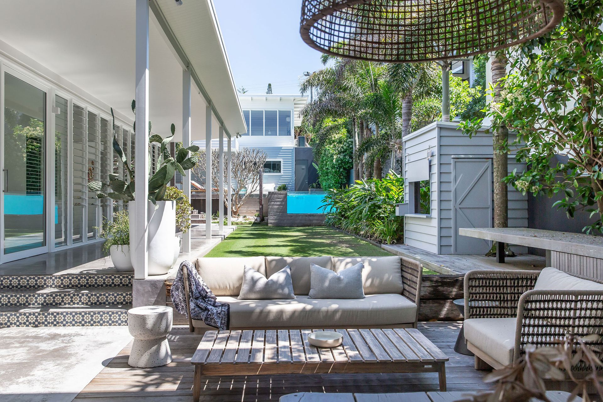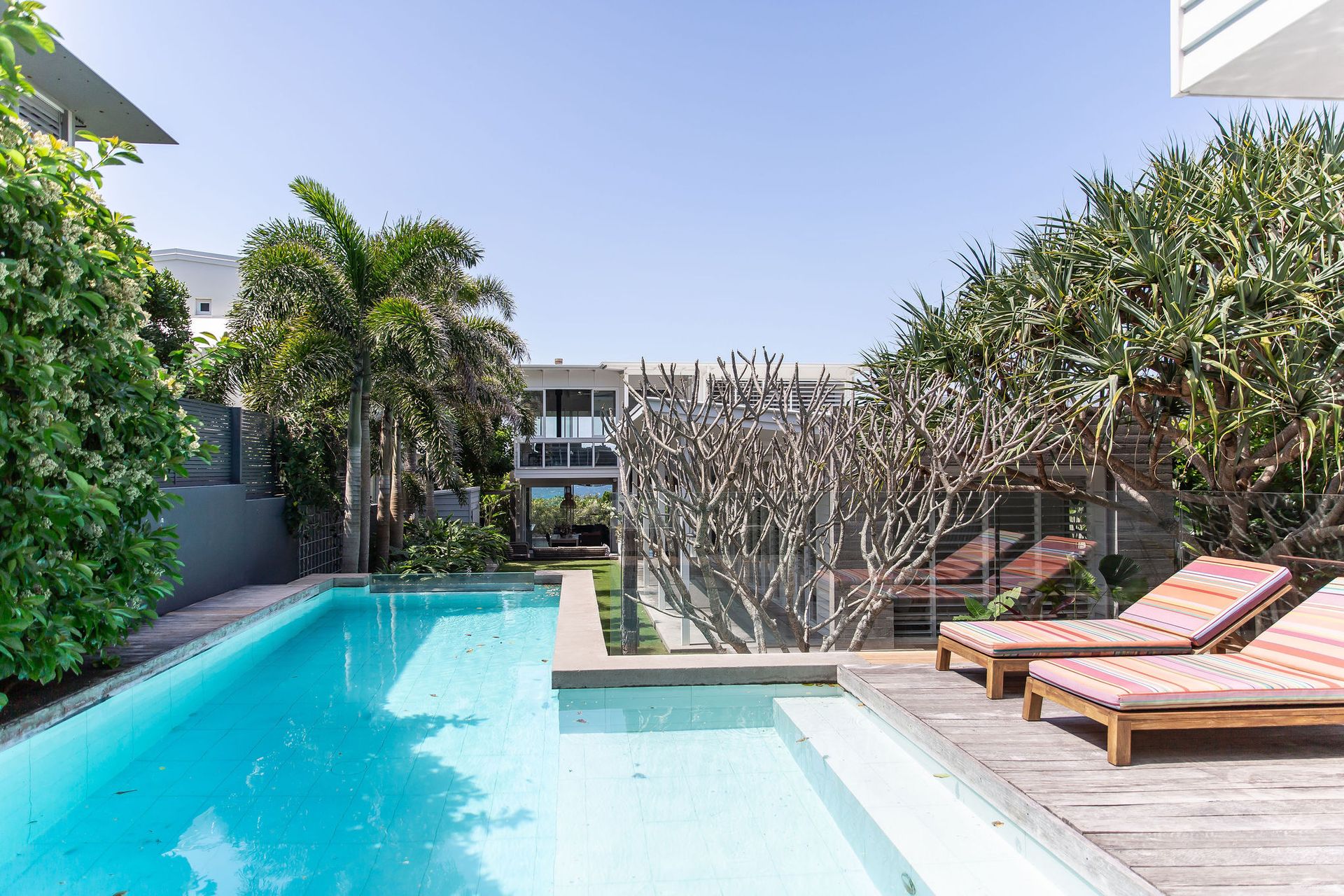 Only 50m to the sands of Sunshine Beach, this luxurious beach house is spread over two levels of living, lounging, and entertaining.
