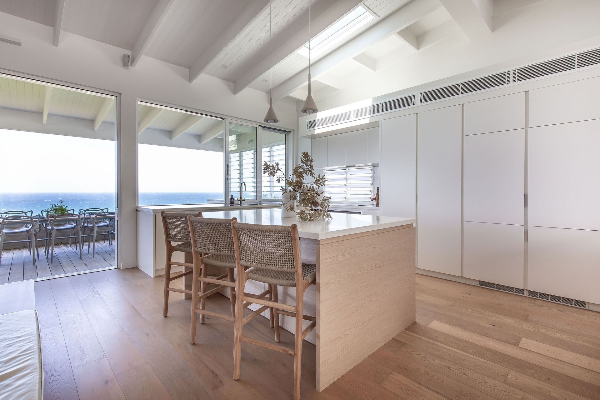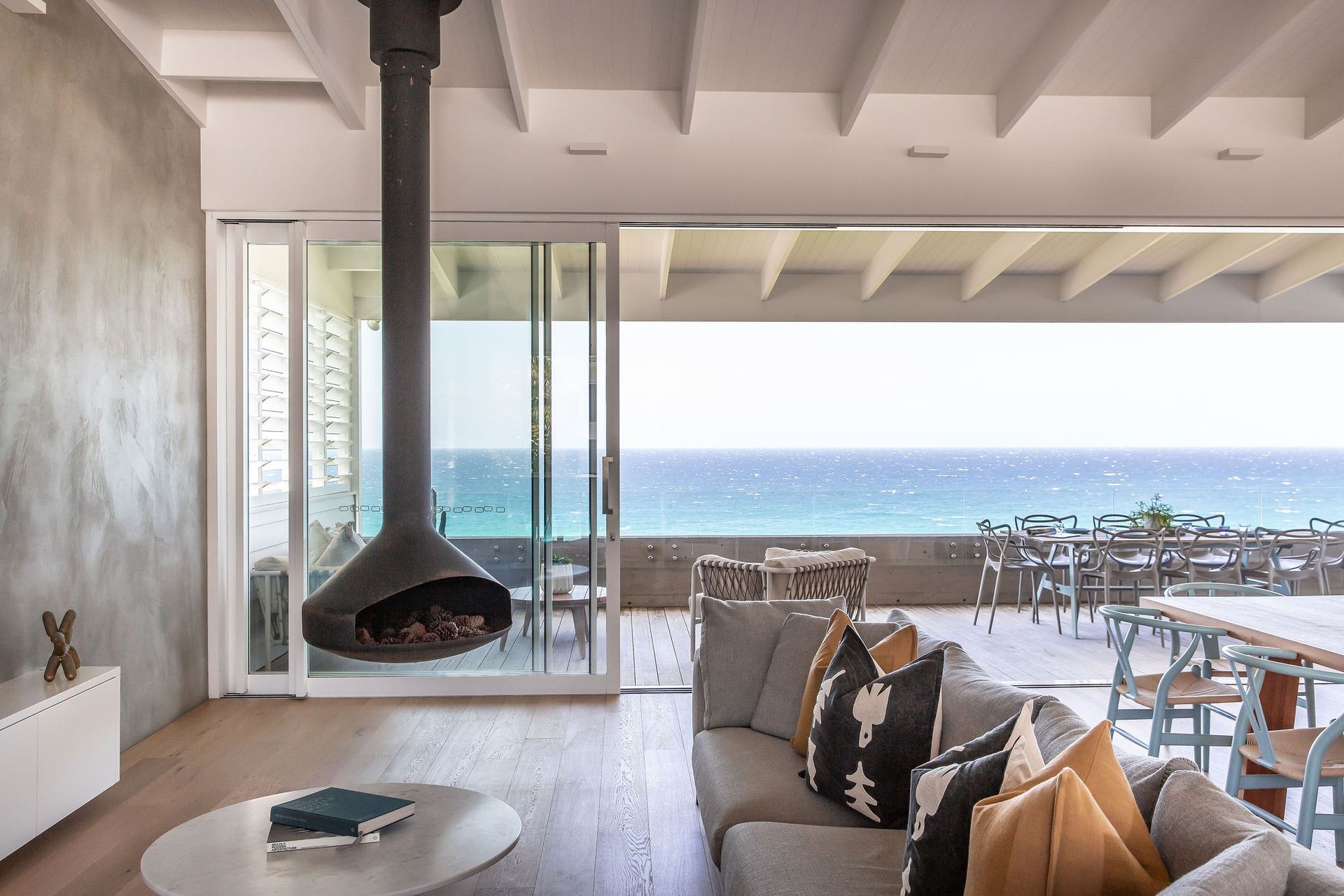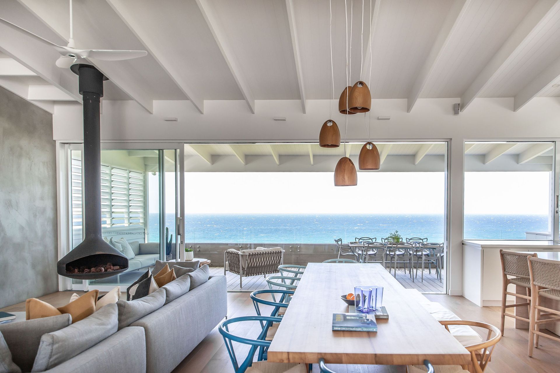 Seabreeze offers modern interiors featuring an open-plan layout that prioritize the mesmerizing views. The charm of this designer holiday home is elevated by the flawless incorporation of expansive decks on both levels, along with a generous backyard that provides ample room for children to play, adding to its appeal.