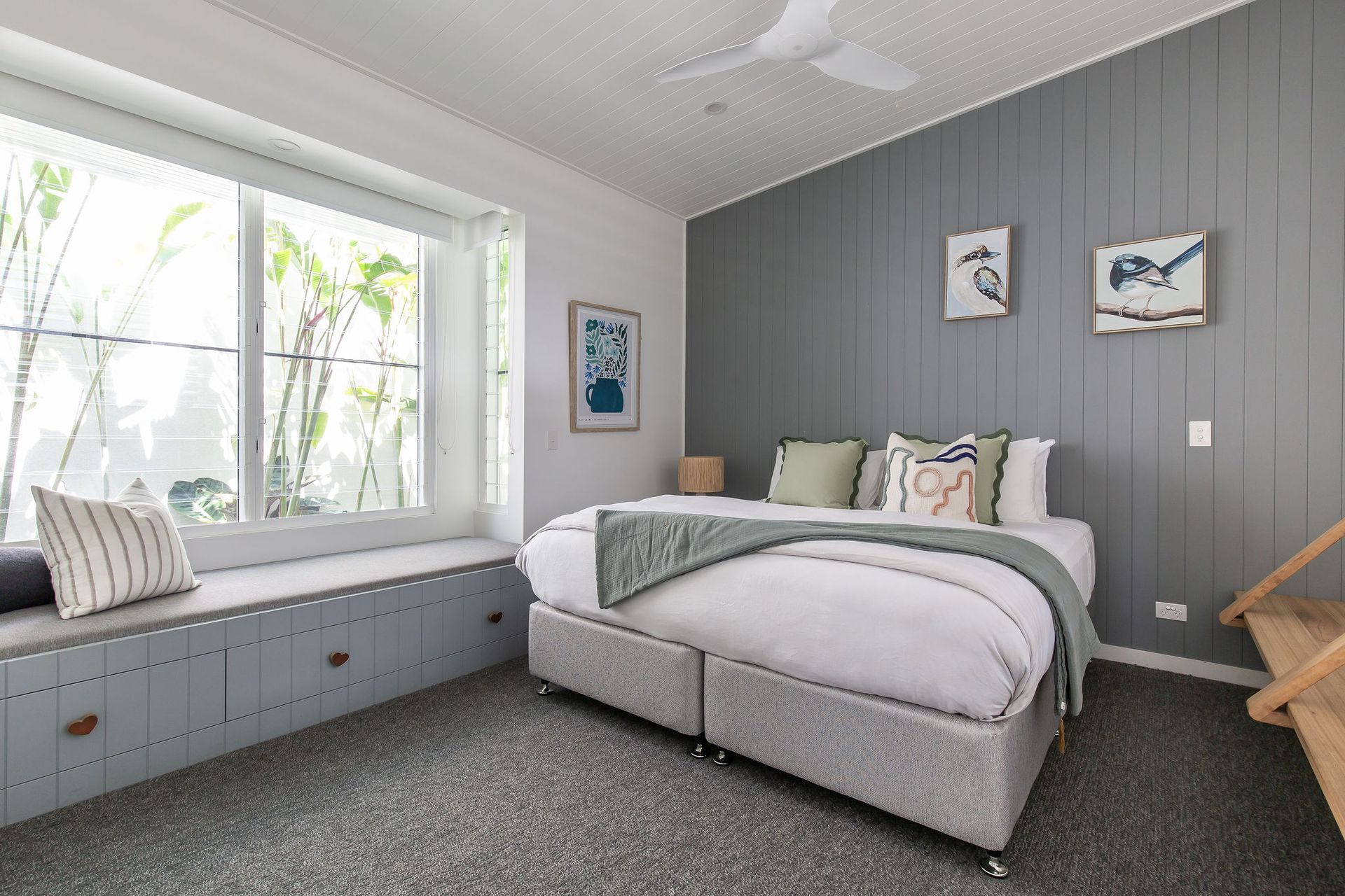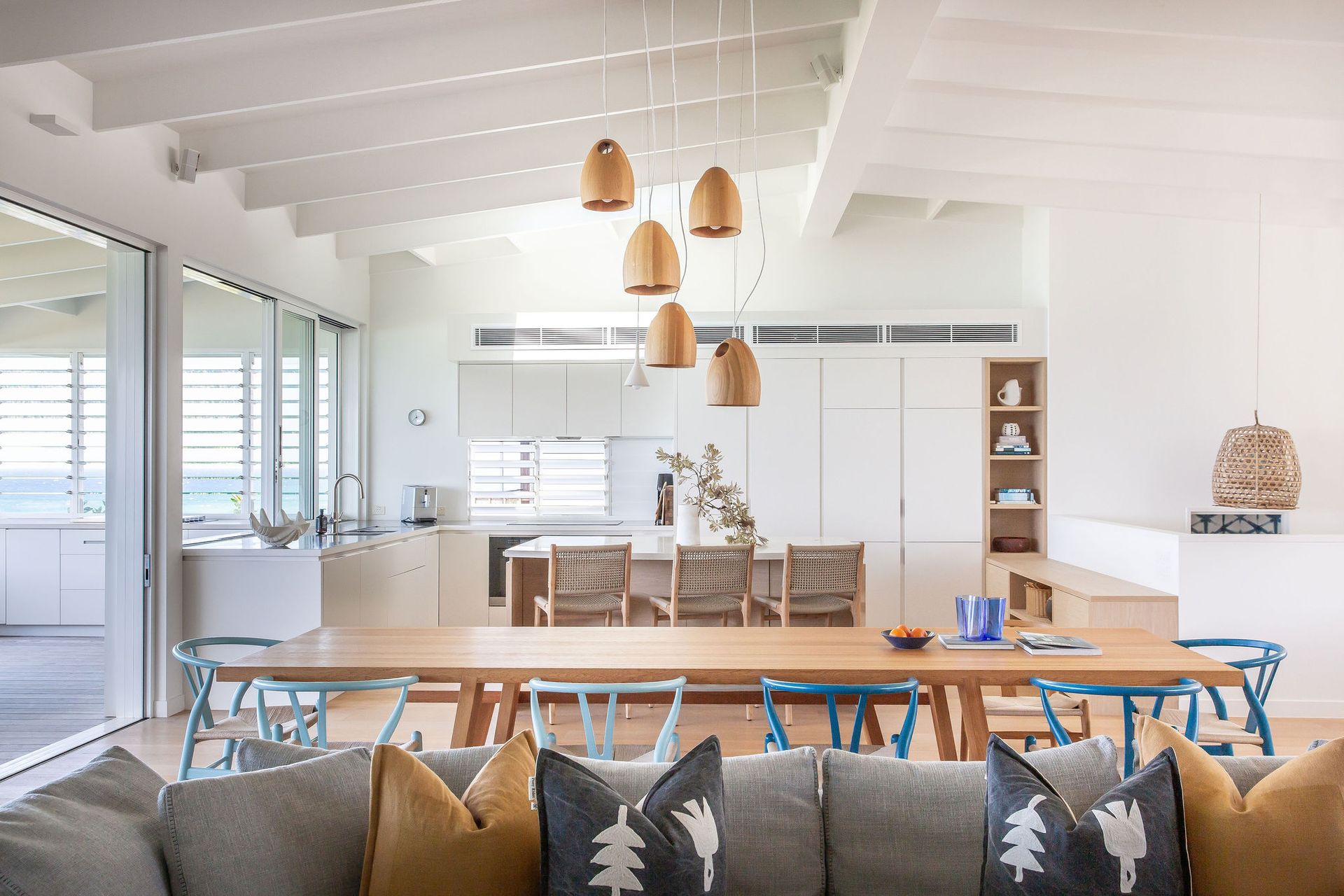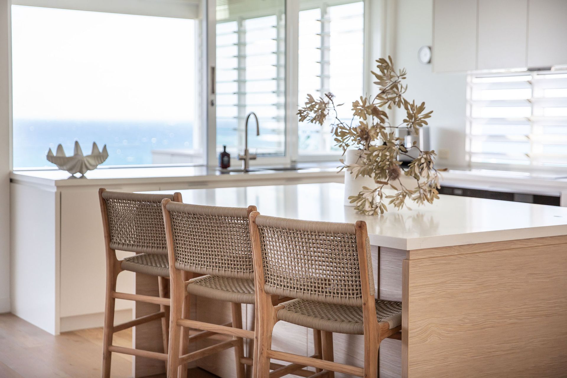 Seabreeze offers modern interiors featuring an open-plan layout that prioritize the mesmerizing views. The charm of this designer holiday home is elevated by the flawless incorporation of expansive decks on both levels, along with a generous backyard that provides ample room for children to play, adding to its appeal.