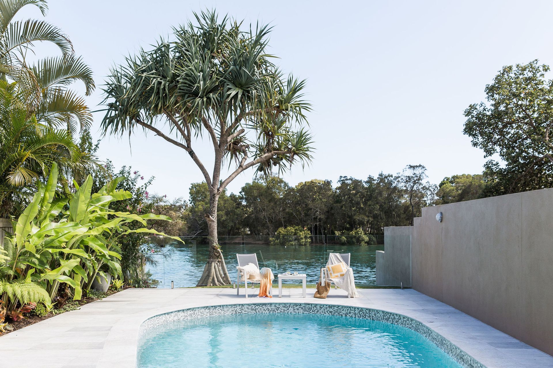 Features: 2 bedrooms, 2 bathrooms, large upstairs deck, outdoor courtyard, direct River access, communal swimming pool, carpark, laundry.