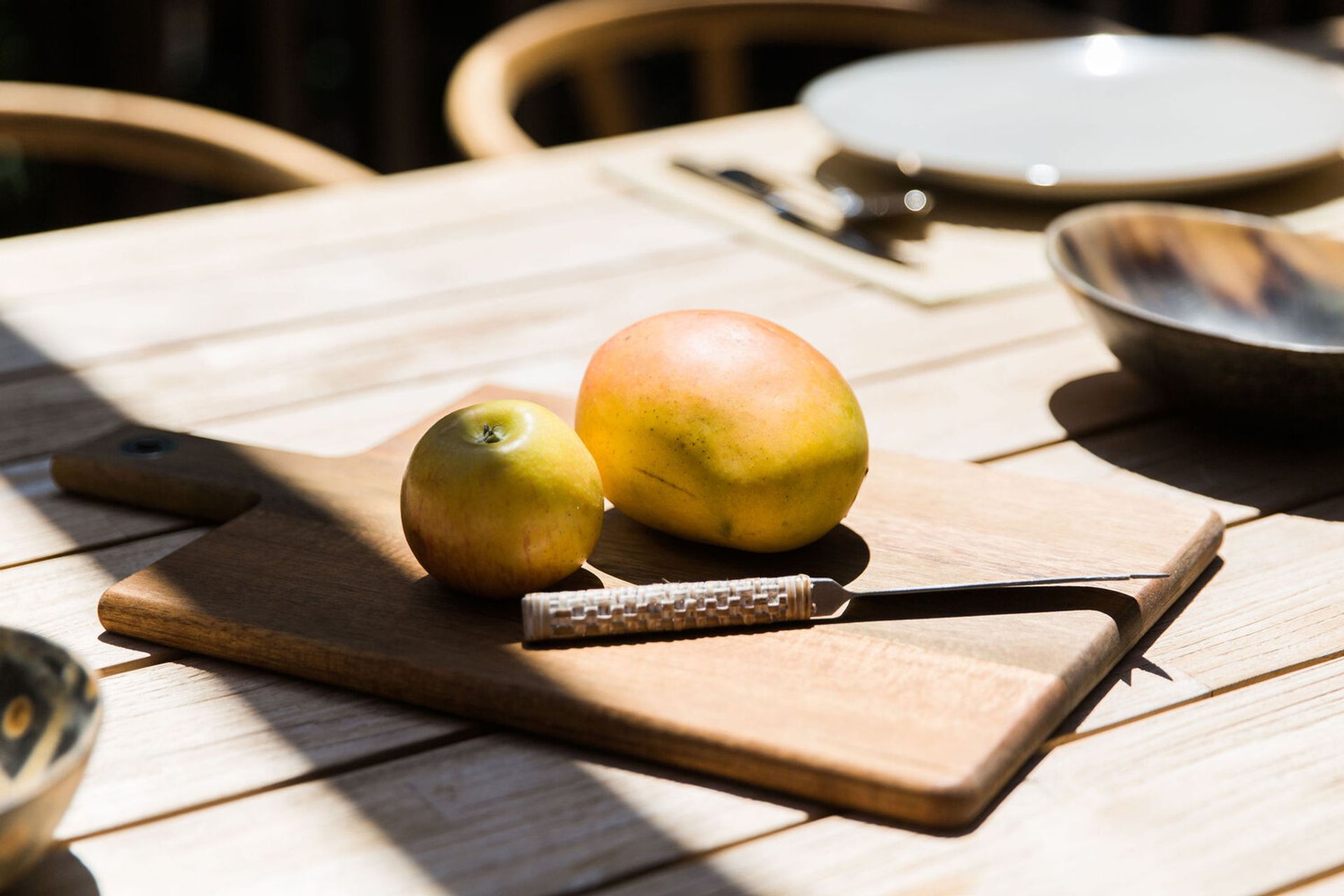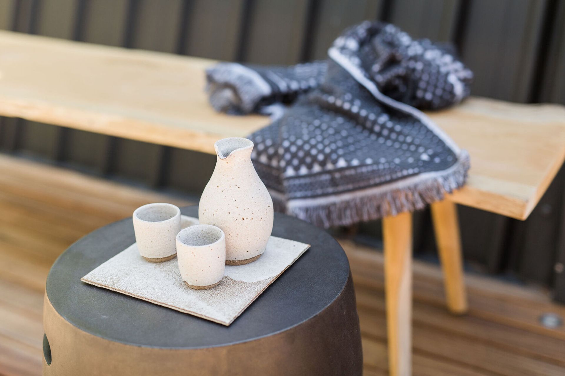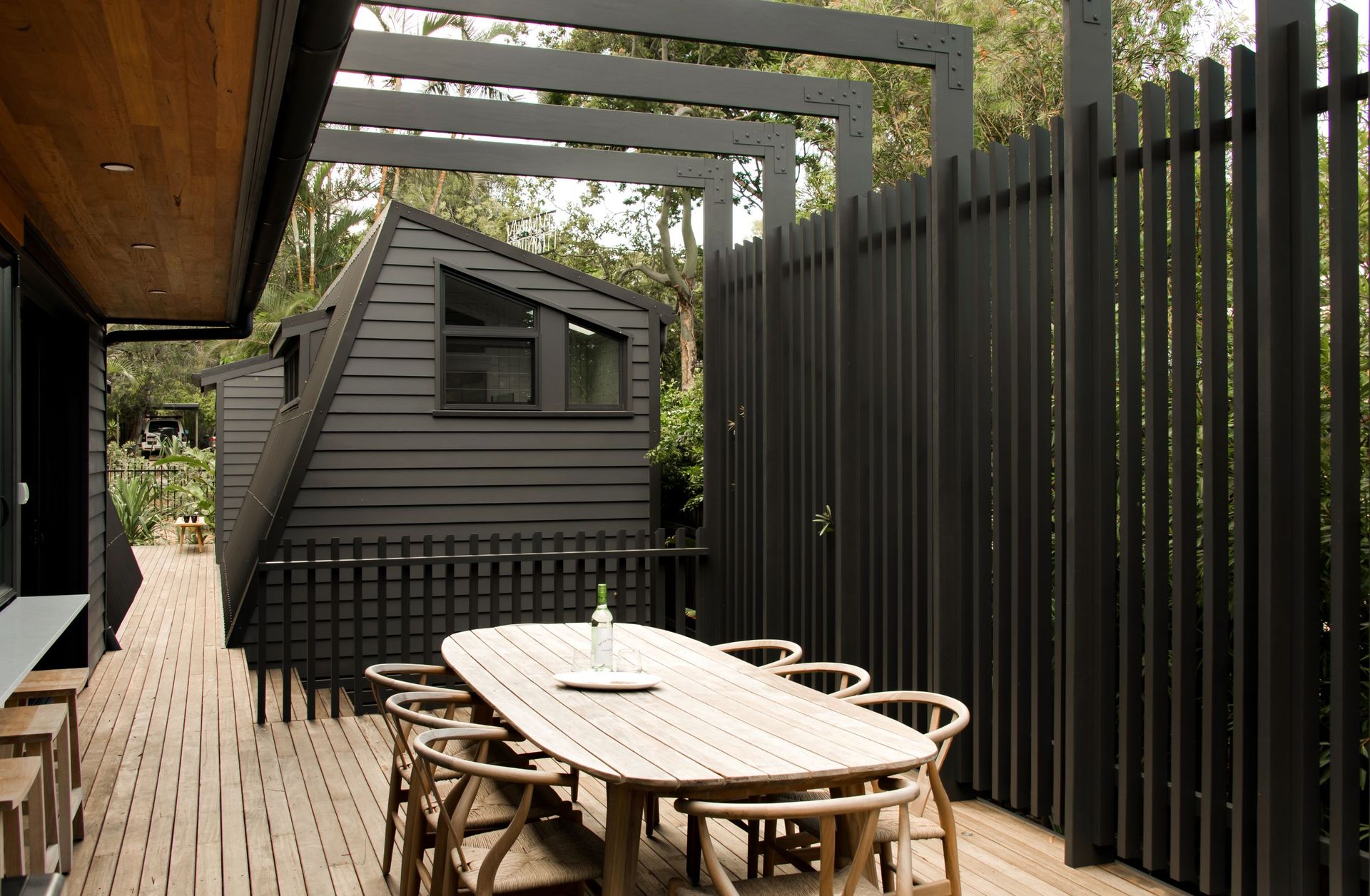 The Sunshine Bungalow opens to the front balcony that leads to the large deck at the back of the property with outdoor dining, BBQ and pool. The pool is copper filtered with fresh water. The space is architecturally designed and nestled amongst the palms and garden.