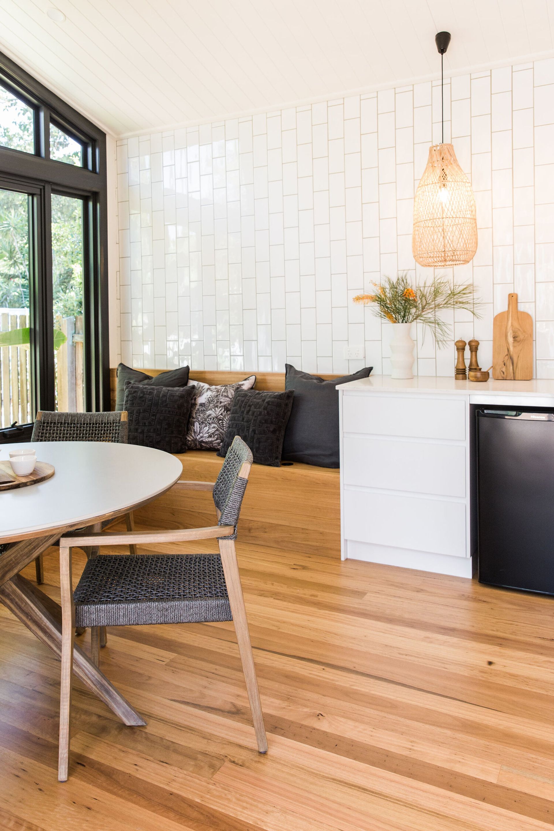 The Sunshine Bungalow, Ferris Street is a stunning mix of timber, glass, tiles, textures, designer furnishings and finishes blended to make guests feel comfortable and relaxed.